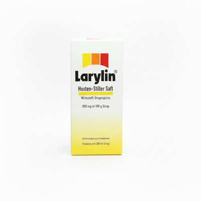 LARYLIN® Husten-Stiller Saft lindert zuverlässig trockenen Reizhusten und Krampfhusten. Der Wirkstoff Dropropizin besetzt gezielt Bindungsstellen in den Atemwegen und unterbricht so den Hustenreiz – ohne die Atemwege zu beeinträchtigen. Für Erwachsene und Jugendliche ab 12 Jahren, auch für die Nacht geeignet.