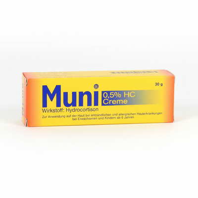 MUNI® 0,5% HC ist eine Creme zur Anwendung auf der Haut bei entzündlichen und allergischen Hauterkrankungen. MUNI® 0,5% HC wird angewendet bei entzündlichen und allergischen Hauterkrankungen mit geringer Symptomausprägung, die auf eine äußerliche Therapie mit schwach wirksamen Kortikosteroiden ansprechen (max. 2 Wochen)