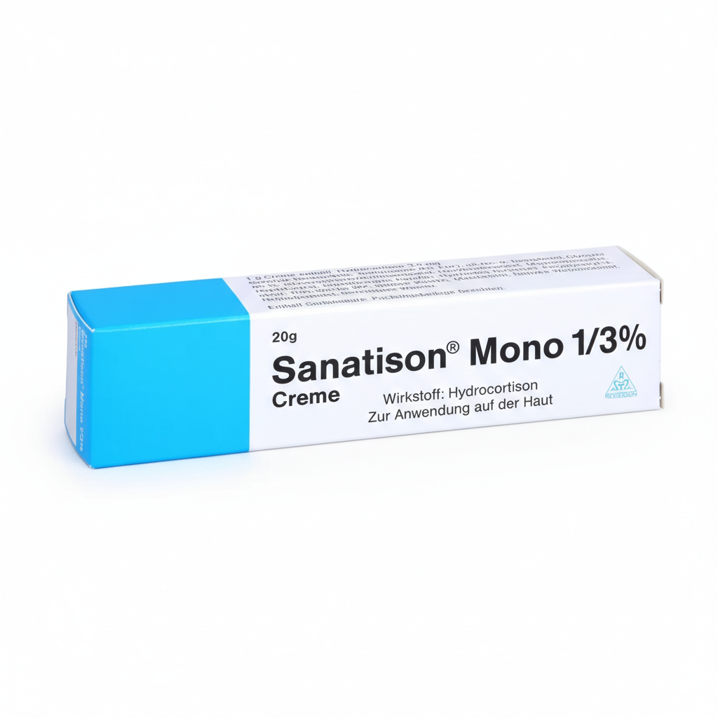 SANATISON Mono ⅓% enthält niedrig dosiertes Hydrocortison (3,3 mg/g) zur kurzzeitigen Behandlung mäßig ausgeprägter entzündlicher Hauterkrankungen. Das schwach wirksame Kortikosteroid der Gruppe I wirkt antiinflammatorisch, antiallergisch und antipruriginös – mit geringer systemischer Resorption.